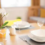 Eine Küchenzeile in der Unterkunft bietet einen Herd und einen Geschirrspüler. Vom Flughafen Karlovy Vary sind es ca. 31 Minuten mit dem Auto zum Apartment.
