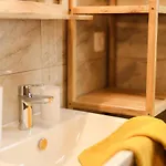 Das Apartman 4 - U Pac-Mana - Rezidence K Lanovce verfügt über eine getrennte Toilette und eine Dusche für Ihren Komfort. Ein Haartrockner und Badelaken sind ebenfalls vorhanden.